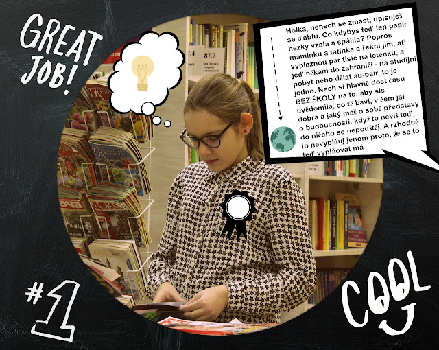 "Holka, nenech se zmást, upisuješ se ďáblu. Co kdybys teď ten papír hezky vzala a spálila? Popros maminku a tatínka a řekni jim, ať vypláznou pár tisíc na letenku, a jeď někam do zahraničí - na studijní pobyt nebo dělat au-pair, to je jedno. Nech si hlavně dost času BEZ ŠKOLY na to, aby sis uvědomila, co tě baví, v čem jsi dobrá a jaký máš o sobě představy o budoucnosti. když to nevíš teď, do ničeho se nepouštěj. A rzhodně to nevyplňuj jenom proto, že se to teď vyplňovat má!"